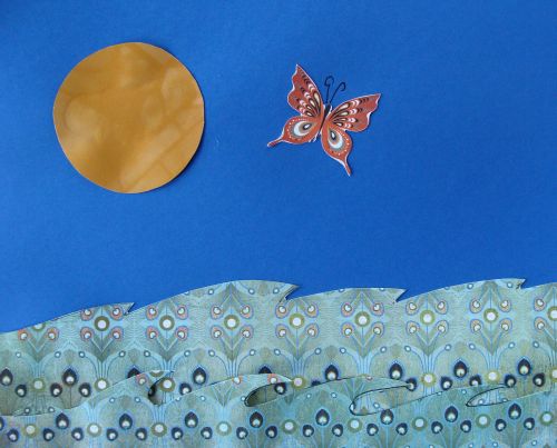 As I explore the craft, I am having a lot of fun with layering papers of different colors and textures, and playing around with the concepts that I take for granted in my photography like illumination, the flow of water, and capturing winged creatures in flight. In the above picture, I want to add a sail boat with billowing white sails. There’s a reason why but I’ll share that reason later if I manage to make a passable sailing vessel. 😉