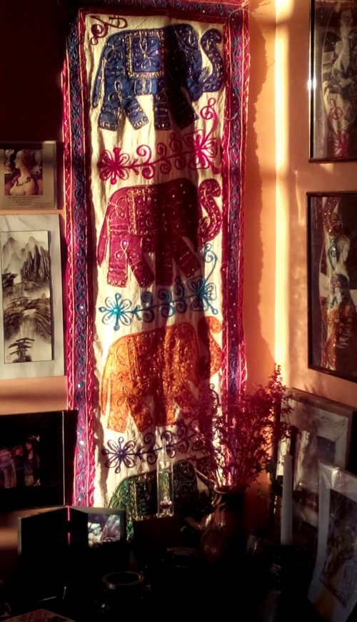 What a beautiful corner! Is that textile from Thailand? Or maybe India. So lovely.