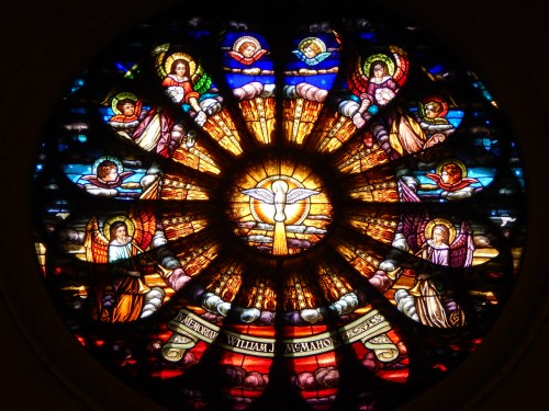 During a recent trip to California, I was standing on a street corner looking up at a church. As usual, I’d come upon it because I’d gotten lost. I wanted to enter to see what kind of stained glass might be inside but I could tell that mass was about to start and I did not want to disturb the service with the shutter of my camera. I was about to walk away when a voice behind me said, “Well, why don’t you come inside?” She was an older woman with a bright smile. “It doesn’t matter if you’re not Catholic. Just sit in the back so you can take a peek.” All but taking my hand, she led me inside. I did not take pictures that day but I did return and this is a little of what I saw.