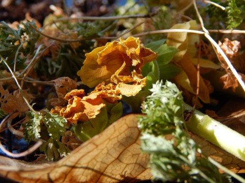 while tending the indoor gardening and sweeping away the debris