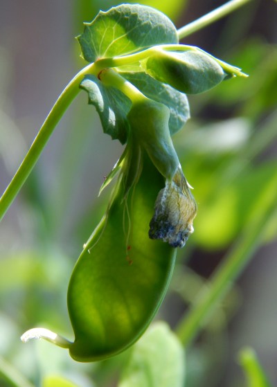 Not with my one pea pod. In the right light I can see the tiny peas. One for sure. Two maybe. I’m hoping for three. The whole pod is about three-quarters of an inch. The largest pea is the size of the smallest seed bead and the smallest pea like a period. Why does such a tiny thing bring me joy? Even in the midst of pain, physical or otherwise, I look at that pod and it makes me smile. And I wish I could box up that feeling, in tiny boxes of course, and mail it out to the friends and family who need some joy in their lives. Or at least a momentary smile.
