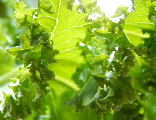 The kale was purchased from the farmers market yesterday. It is a big green bouquet sitting in a silver bowl of water next to the window in the kitchen. The wide frilled leaves are draped over my basil and a few other herbs. It’s temporary shade since we’ll soon eat it up. But until the cooking commences, sunlight shines through the larger leaves.