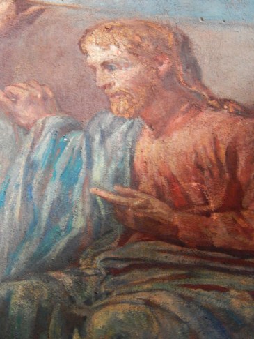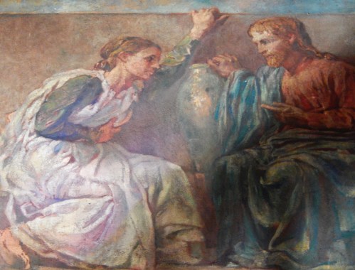 When I first photographed the John La Farge mural Christ Woman at the Well inside Trinity Church in the City of Boston it was late afternoon and I had a much simpler point and shoot camera. The photograph turned out just fine. As I progress as a photographer though it has been fun to revisit works photographed in the past. These photos were taken with a more advanced camera and in the light of the early morning sun shining onto the mural.