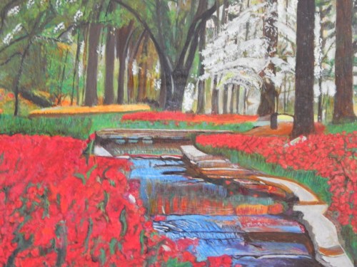 It was the art on the walls that kept drawing my attention in my uncle’s modest home. A few screen prints hung, but mostly the walls were lined with canvas paintings. I began to notice artwork outside as well, paintings on trees and wooden panels. Finally I asked who did all of the paintings and he said, “I did.” His wife pulled more from under a bed and those tucked away in closets. As for when he did them, he said the majority were done while recovering from prostate cancer. As he received treatment, “I couldn’t do much but I could paint.”