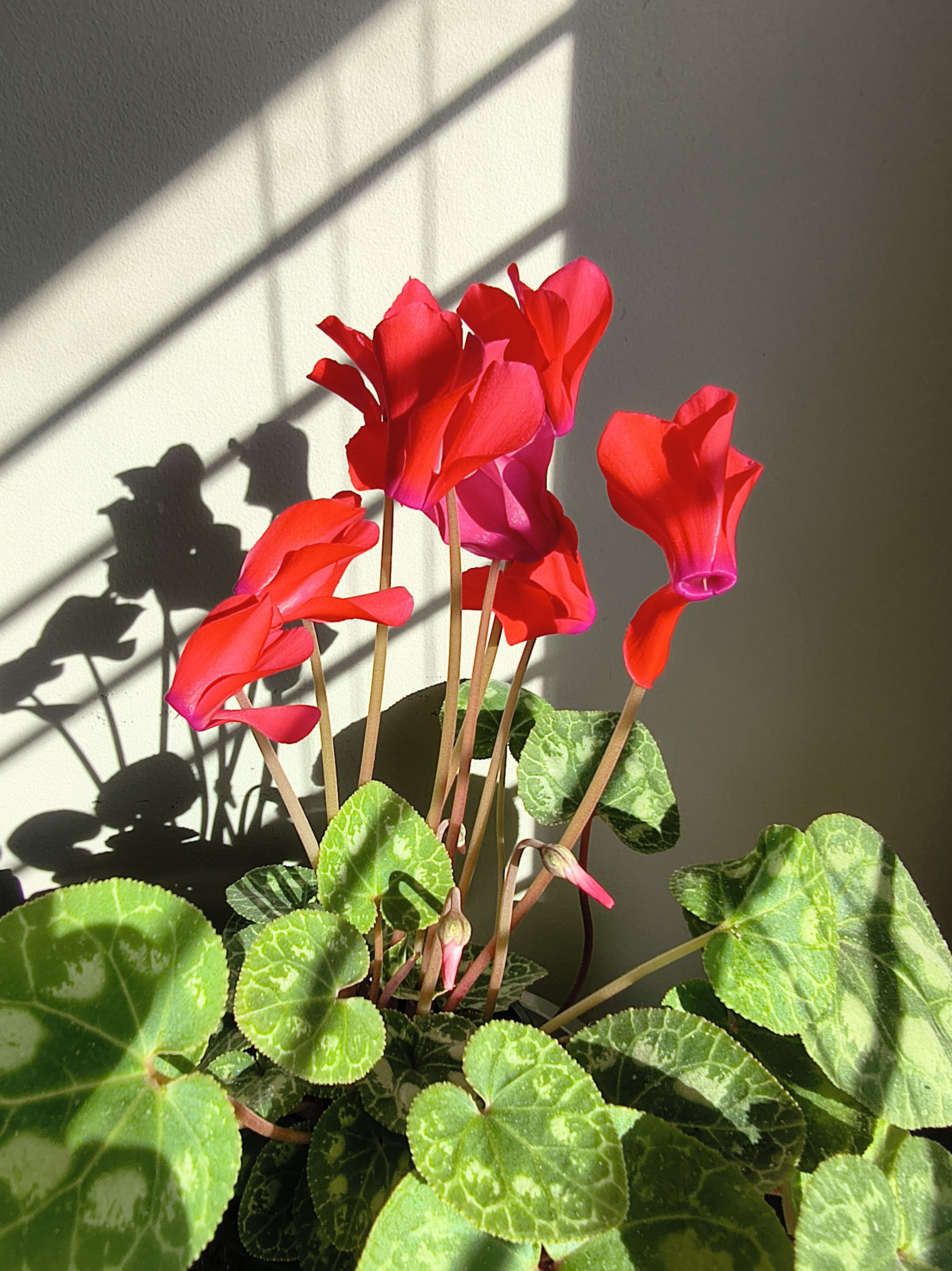 I love when the sunlight falls upon the leaves of this cyclamen. It makes me pause in my day and it is important sometimes to simply pause.