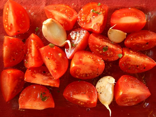preparing tomatoes for roasting