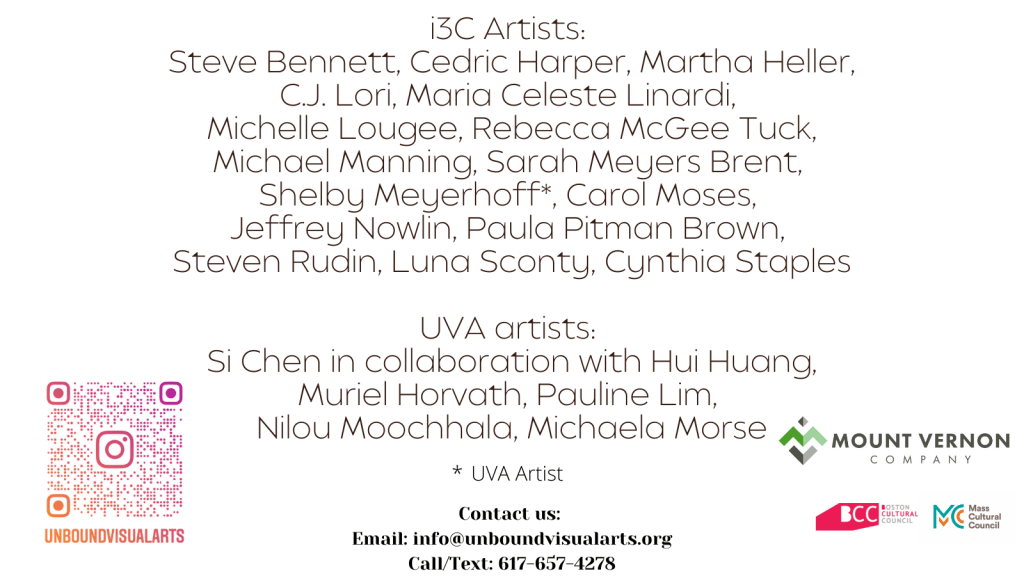 “This exhibit is part of our new Members’ Curatorial Series, an annual opportunity for members of the CAA to curate an exhibit of three or more artists. The exhibit opens on April 3rd, kicking-off a one-year partnership with BioMed Realty, at a new gallery space, CAA @ Canal, located at 650 E. Kendall Street, in the heart of Kendall Square’s Canal District. The exhibit will remain on view through May 12th, 2023.”