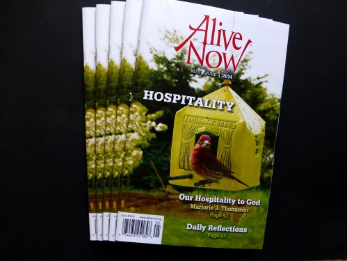 The May/June 2014 issue of Alive Now Magazine focuses on hospitality. I’m grateful to have one of my photos appear in the pages. It is a lovely, thought-provoking issue. Hospitality is something I struggle with. I know I’m not always as welcoming as I could be but I will endeavor to do better until the end of my days I hope. 😉 Learn more about Alive Now and the availability of this issue here.