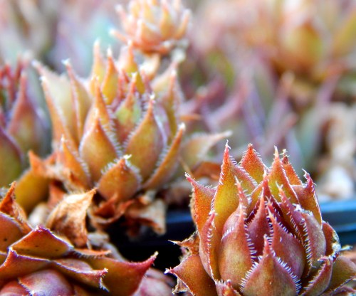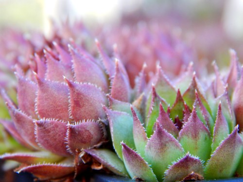 My mother kept a bucket of chickens next to the back porch.  It was a big white bucket like an old stew pot.  Hens and chicks was what she called the little spiky plants growing in there. No matter how hot the summers, no matter how many other flowers and vegetables died in the baking Virginia sun, those plants survived to flourish the following year. They were easy to transplant. I remember picking up the little ones … they just popped right up out of the soil … and tossing them into another little cup of dirt. My mom told me to stop doing that because she’d specifically positioned her pot of chickens. Their singular location, next to the porch, was part of her garden design.