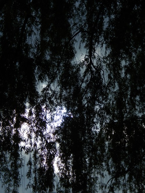 Just light raining down through the leaves of a willow tree in the Boston Public Garden.