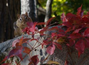 On the way into work this morning I saw not one but two chipmunks. They raced along a stone wall surrounding the school where I work. I just stood and watched them for a bit. No reaching for the camera. I’ve learned I have limited skill and luck in taking pictures of chipmunks. Though I did have this lovely moment one autumn.