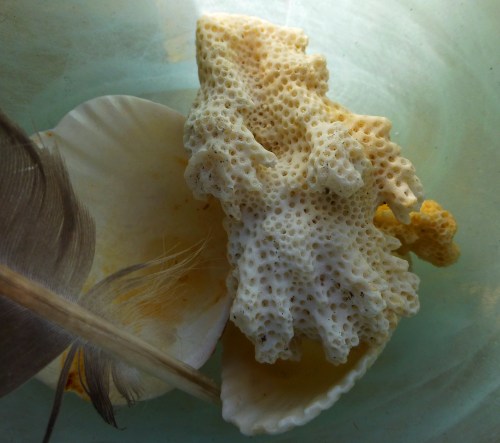 I’m not sure I quite get Pantone’s “living coral” as Color of the Year but it did engage my brain … like the visual equivalent of a writing prompt … to seek out where that color might already be around me. I haven’t found it (yet) but I did chance upon a photo of decorative glass composed of other lovely pastel shades. And as I stared at that photo I began to imagine what might happen if I continue this new year with my interpretation and expression of John La Farge’s idea of “construction by color.” As you can see in the following slide show, you never know what might happen when you take colors, turn them on their sides, weave them together, shrink and repeat them … and so on and so forth until glass is translated into fabric.