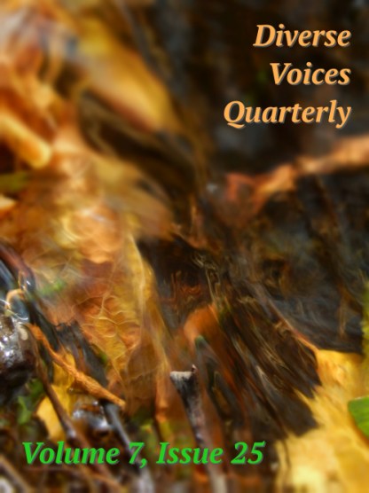 It’s hot off the presses, folks! Diverse Voices Quarterly, Volume 7, Issue 25. I’m honored to have had one of my photos selected as the cover image … water flowing over leaves, a melding of colors. Available online and for the kindle. As always, this issue contains a wonderful selection of poetry, fiction and nonfiction. Brief reads to be savored, like Home by Debonair Oates-Primus and Ancestors by Lee Varon. Enjoy.