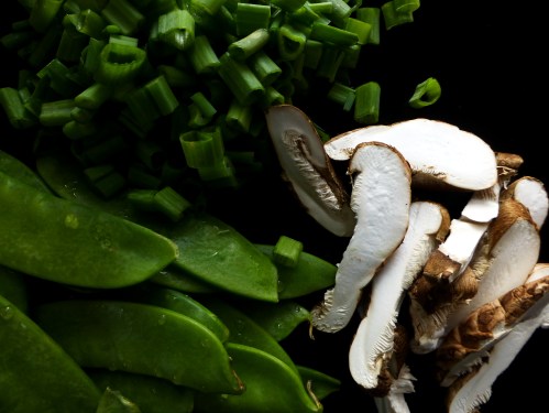 I wasn’t really thinking dinner. Luckily, Steve always is and so when he returned home, I simply showed him my colorful palette and he saw cooking ingredients.  After a moment of thought, he nodded and said, “I can work with this.”  He would add white garlic and red onions to the mix, but no images of these items do I have for this post because by then I had put my camera away.