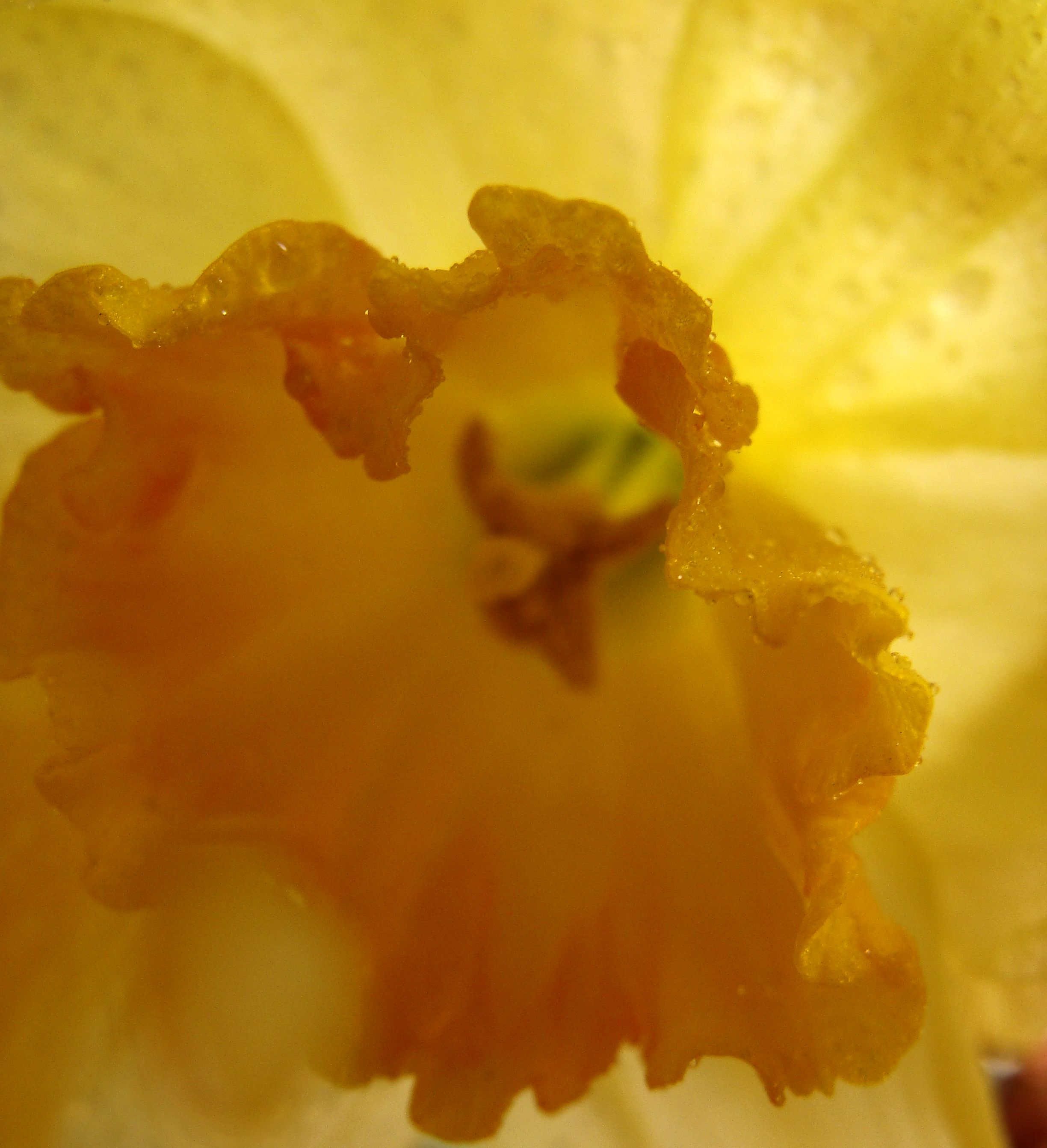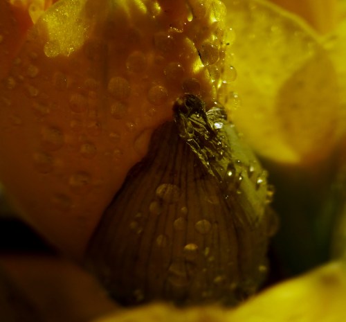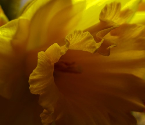 So, earlier today, I wandered into the kitchen to make some lunch. A cloudy day and chilly to start so I decided on a cup of tea. As I walked toward the stove past the little table where I keep herbs, cut flowers and things like that, I glanced at a vase of old daffodils.