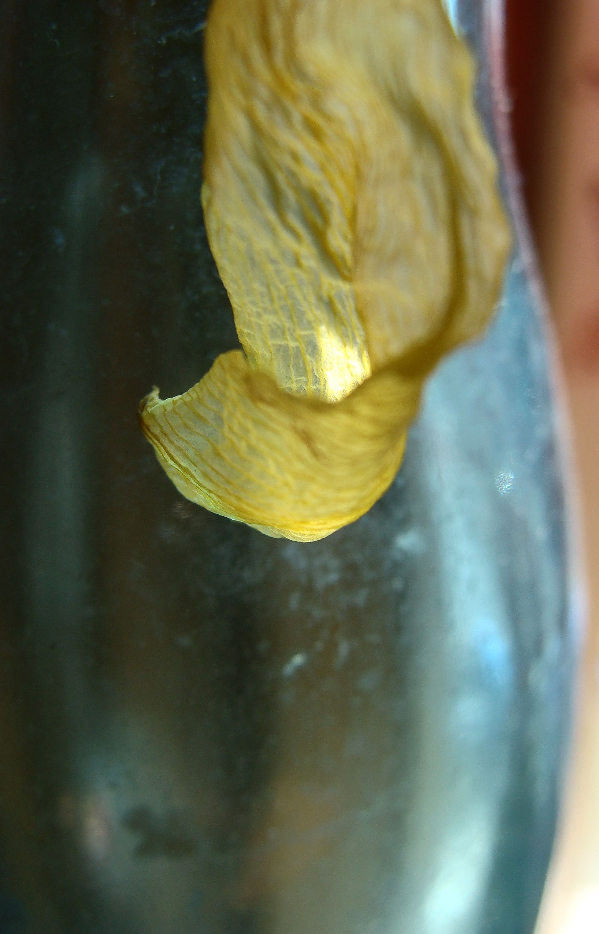 I could not help but think, “I’ve got to throw these things away before the petals fall all over the floor!” Then I’d have to vacuum … though I already needed to vacuum. I spritzed a few stems with water. Maybe a little moisture would help. Instead, a petal drifted free of its stem and just managed to land on the table.