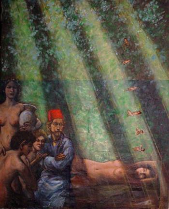 “…compositionally outstanding…. but outstanding because of the remarkable brush work… which is brilliant because of his command of color and line….. the sensual twirl feeling of the nymphs… the satyr in a diagonal angle attempting to brace himself against their attempts to over power him… Bouguereau’s subtle sense of line accenting the individual rhythms of the different poses…”