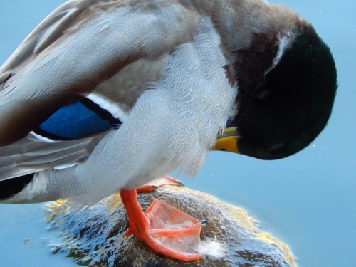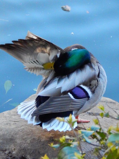 One day a mallard stepped out of the water onto a rock and began to preen.