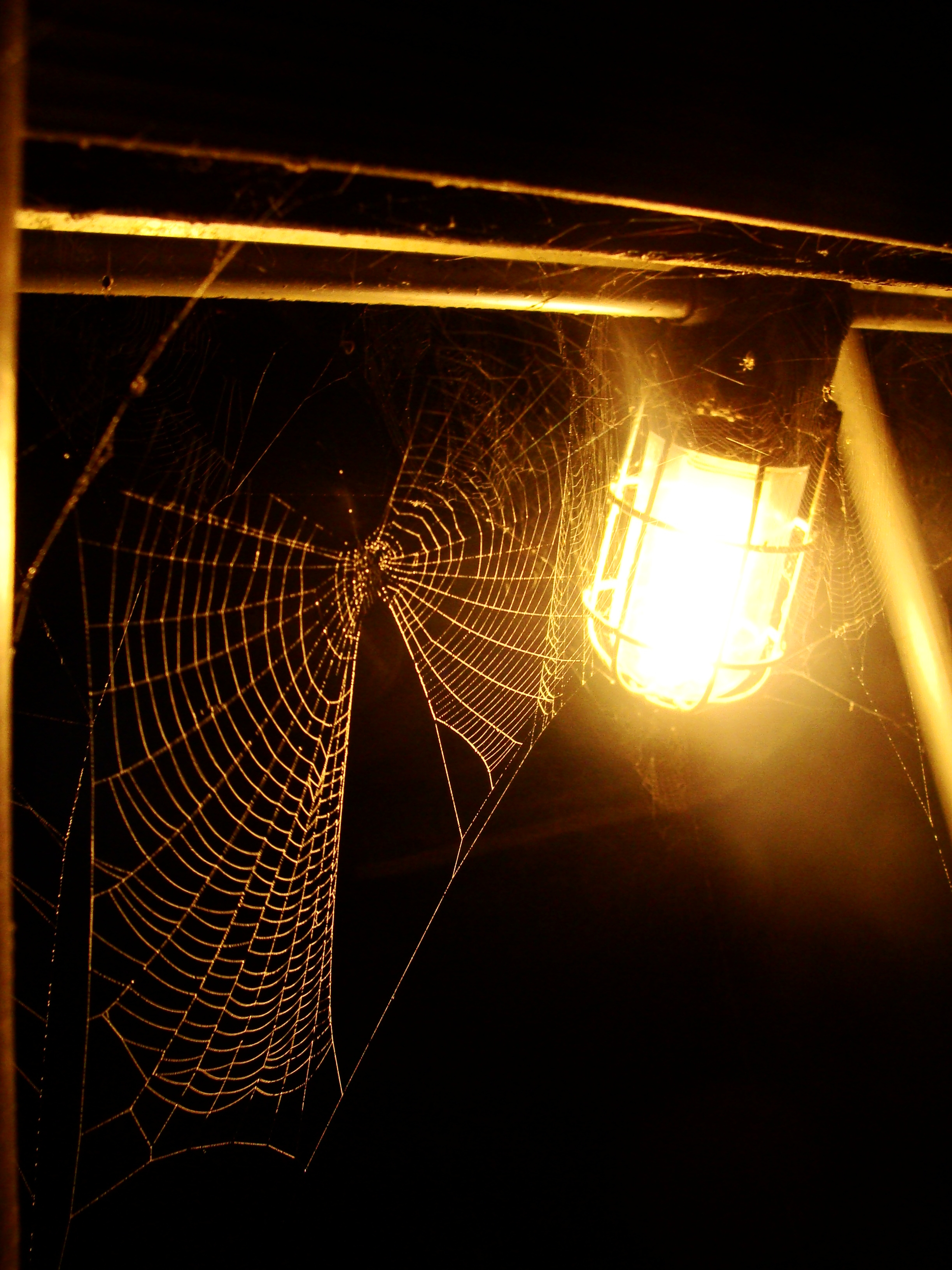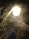 Spiders — yes, spiders! — continued to woo me with their wondrous webs. As imperfect as they are, I cannot help but share these images of spider webs I saw one July night in Maine. Layers upon layers of fog-covered webs illuminated by night lights.