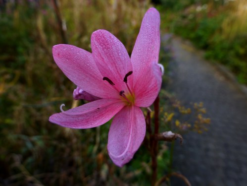 On my way home from work, I decided to detour through the landlord’s garden. I was a bit cautious because I know there’s a rat that calls the garden home. On occasion I’ve seen a rabbit nibbling at the greens. And there’s a neighbor’s cat that likes to nestle in the lavender. She must smell quite lovely when she returns home.