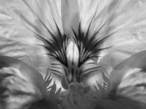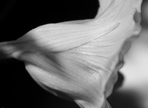 On a gray, wet day, I chose to shoot the primrose leaf in black and white. Its veins remind me of trees and rivers, all branching. I’ve never grown primrose before. Its leaves are doing well, quite well, but no new blooms. We’ll see …