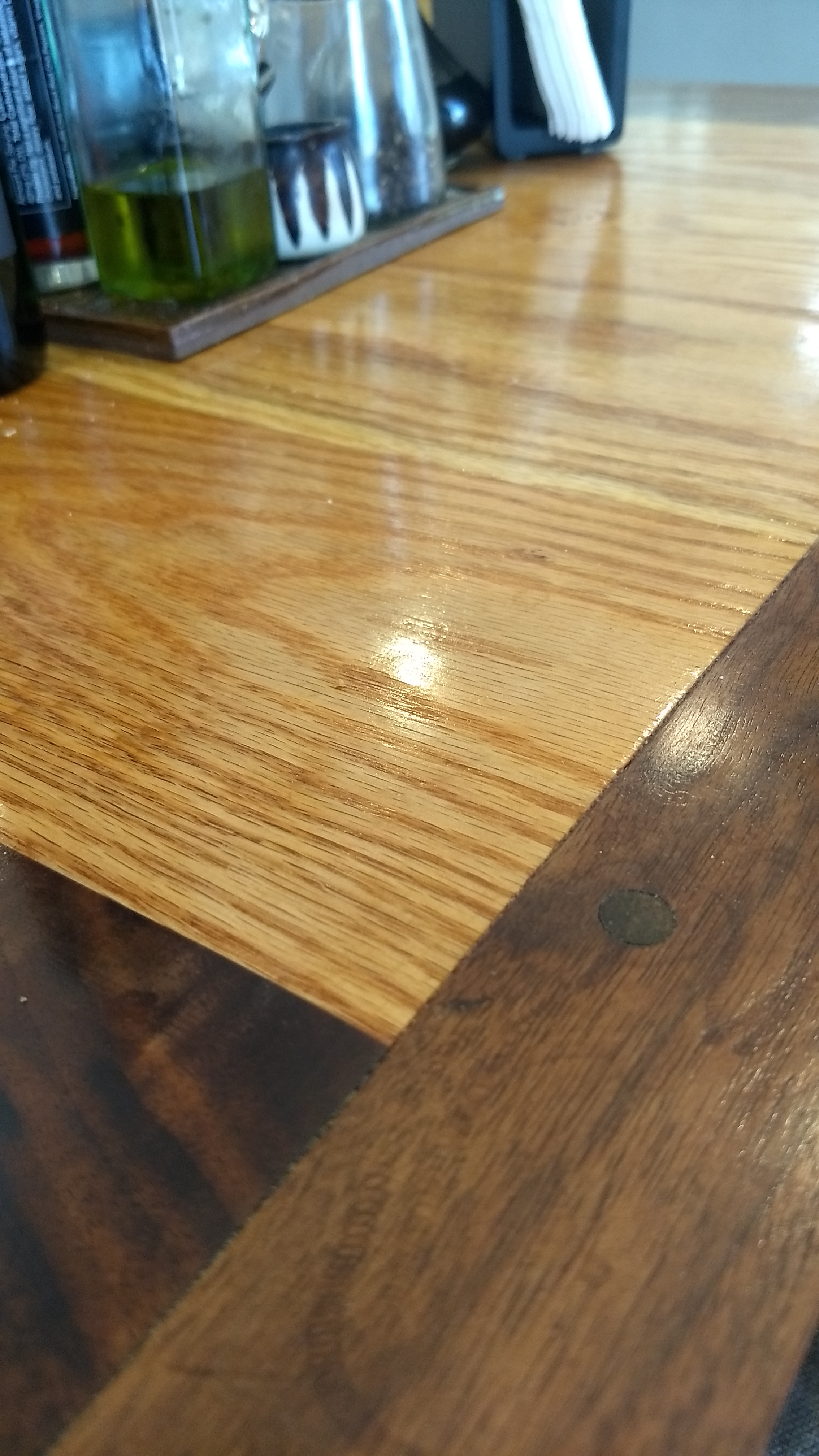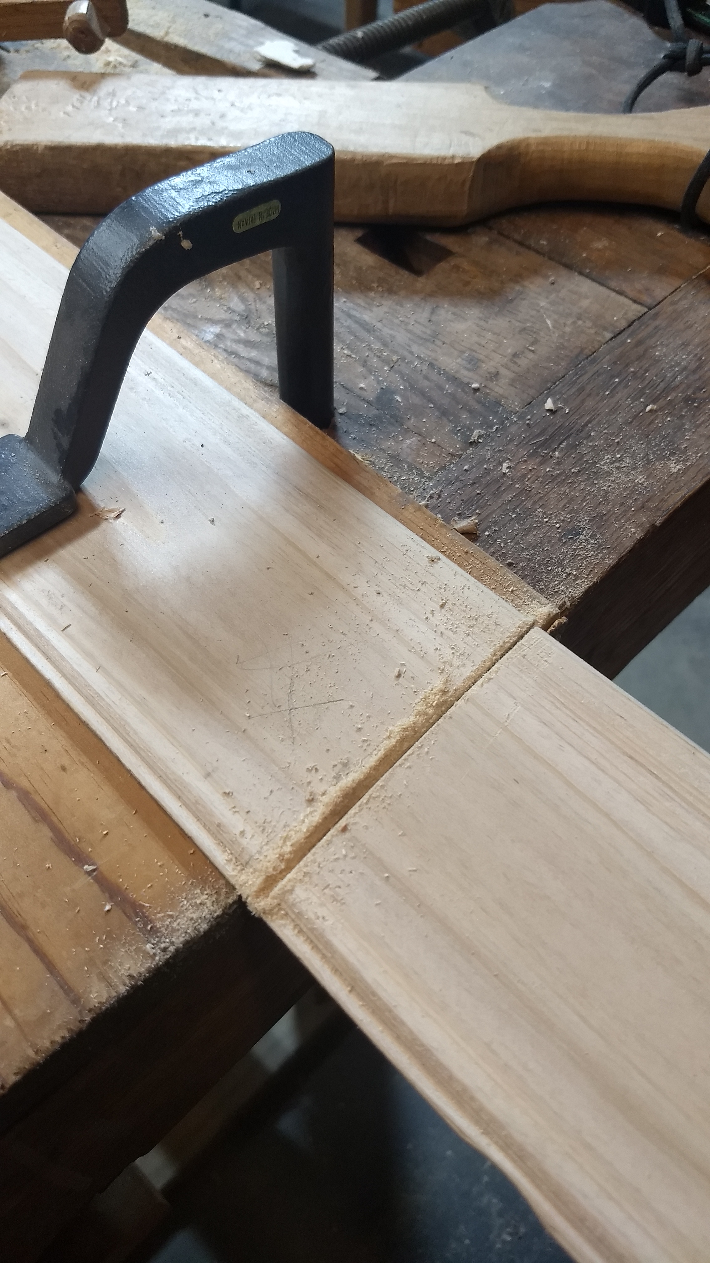 The former owners of the house left behind a large wooden piano seat top. He’s planning to turn that into a utilitarian table to help organize his work space and properly sort out works-in-progress. I asked, silly me, why don’t we grab a hammer and some nails and put legs on that thing right now. With an arched eyebrow he described his plan to make a frame, the seat will rest on the frame, and legs will attach to the frame, just like the dining room table.
