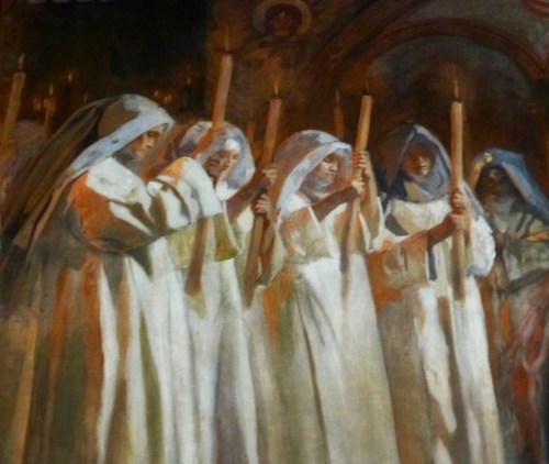 For those new to the murals, in the 1890s Edwin Austin Abbey began a series of 15 wall paintings depicting The Quest and Achievement of the Holy Grail (based on a version of the legend by Henry James). They were installed in 1895.