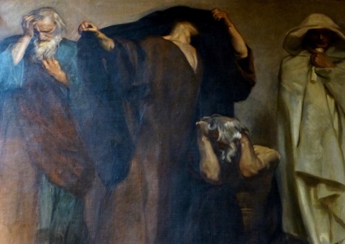Based on yesterday’s post, I was asked by a few folks if I went up one more flight of stairs to view the hands of the Sargent murals. Oh, yes indeed I did. I did not begin with the Madonna of Sorrows with her silver crown. With my limited time, I focused first on the prophets.