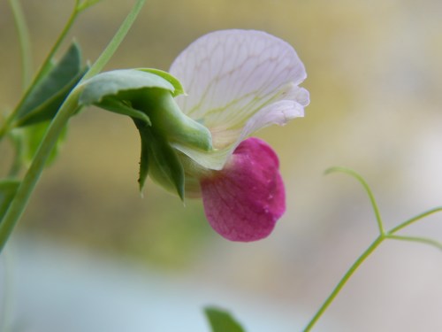 At the window my one pea blossom continues to bloom reminding me of a garnet drop.