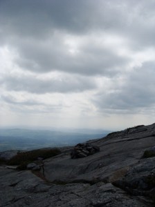 Yesterday, at the the summit of Mount Monadnock, I borrowed Steve’s phone to call my brother, Keith, in Virginia. I told him, “Guess what? Steve and I are standing on top of the world … sort of. We’ve hiked to the top of a mountain. We’re standing nearly 3200 feet in the air!” And my brother responds, “And how the heck are you getting down?” 😉