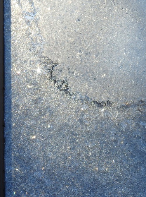 The icy patterns that form on the inside of the windows in the old house where I live. The first time this season. Now it feels like winter. 🙂