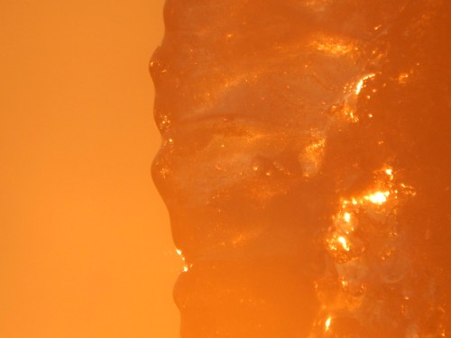 … as we wait for the next two storms. But yesterday there was a beautiful light. I tried photographing that same icicle that during a previous sunset had seemed filled with gold dust. But nothing is ever quite the same. Still beautiful though. 😉