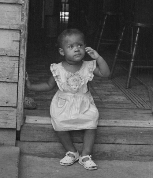 This photo was taken by Joseph Anthony Horne during the 1940s as he worked for the Farm Security Administration – Office of War Information.  As highlighted in a previous chapter of Interludes, he like many other photographers had been sent out across the country, under the direction of Roy Stryker, to capture the American experience. One of the areas that Horne captured on film was southeast Washington, D.C.,  an area not far from where his family lived and an area that was predominantly African American. The photos he took in that community were notable, for me, in part because there was no characterization or stereotyping. He simply photographed in a straightforward manner people living their daily lives. He, like many of the FSA photographers, was very good at that.  Otherwise in commercial media, unless it was an African-American specific publication, there was either no representation of “colored” people or it was often a mimicry.  Out of all the photos that Horne took in this community, I was especially struck by the series of photos of this little girl who had been positioned in front of the camera by a person who appeared to be her mother. No doubt she’d been placed in a best dress for the occasion. And its that dress that caught my attention.