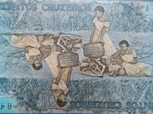 brazil: banknote showing freed slaves cooking