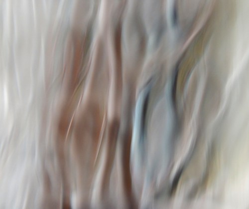 Before journeying to the Brooks Estate, I stood in the living room holding my camera, staring out through that rippled glass of which I’ve written so often. And as I swayed just a bit to change the angle of my view … well, the reflection of the white curtains in the glass and the twisting shapes of the trees, still mostly bare of any leaves, through the glass … they reminded me of many things, from running water to ballet dancers moving across a stage. I could even see singers with hands raised high and voices ringing out in praise.
