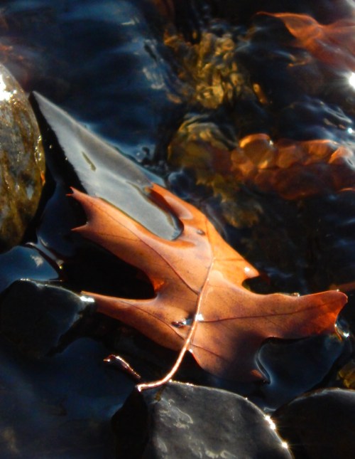 One day I went wandering by the river because I felt a little lost. I thought I might find focus on the leaves fallen in the water but the sun was at such an angle that I could not get the right shot. I kept wandering by the river, in hope, still focusing my camera on the leaves.