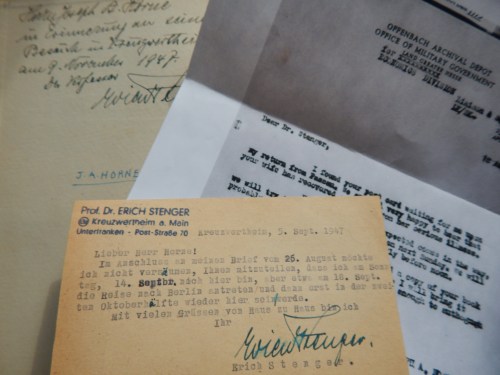 Exactly what Horne was doing prior to assuming his new role remains opaque without futher research. Archival records show him often assisting MFA&A colleagues like Gordon Gilkey, Leslie Post, Lester Born and Paul Vanderbilt with the acquisition of information about available artwork and cultural items. His fluency in German, facility with “dead languages,” appreciation and knowledge of the arts, and photographic skills would have made him invaluable in the field. He produced numerous reports about his trips across Germany about what he was seeing and hearing from locals. People were often very open with him. Following is an excerpt from a field report after visiting libraries in over a dozen landkreise or rural districts: