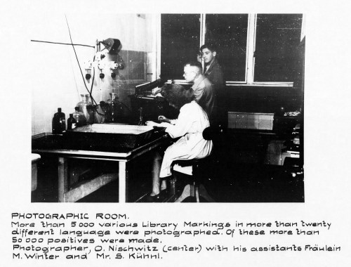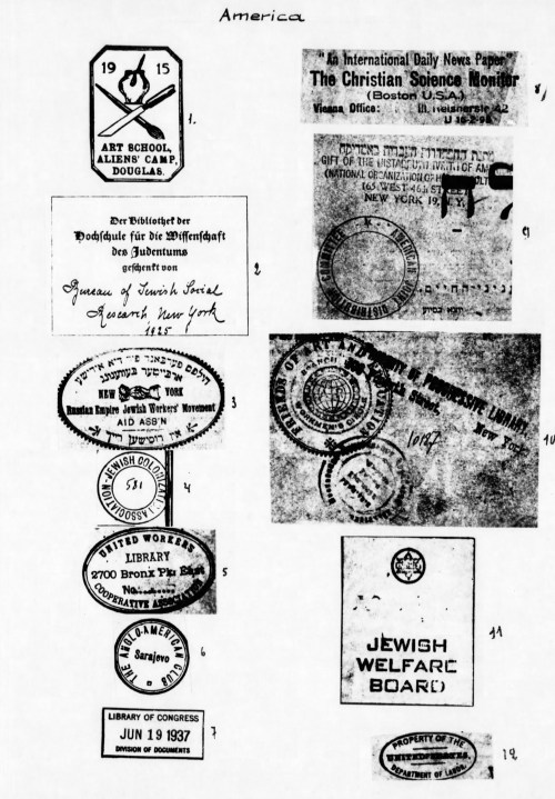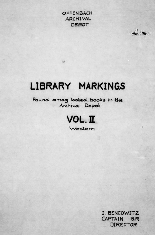 The resulting cataloging system would significantly increase staff ability to identify and sort items, identifying country of origin and other markers of ownership . In the end Bencowitz and his team would complete “two volumes with reproductions of library markings belonging to 4,105 libraries of individuals and institutions in Western and Eastern Europe …