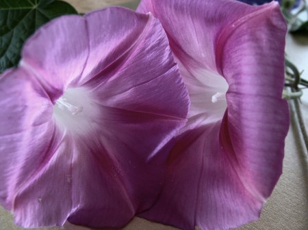 I’ve been admiring the morning glories in my landlord’s garden for a while now. Amazing how those vines progress across the yard and how the colors of the flowers morph over time.
