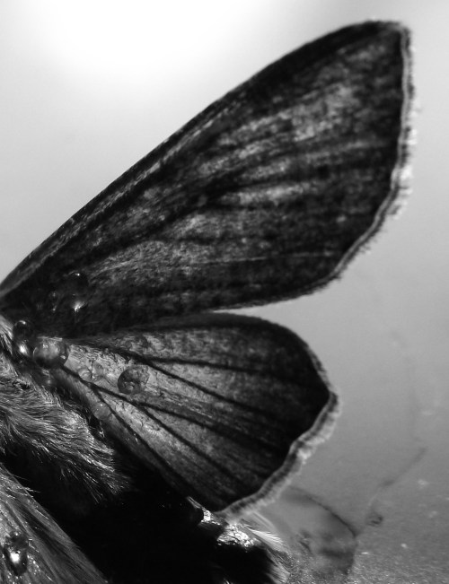 Here in Somerville, in this house with so many windows and so few screens, many a winged creature has made an appearance, from bumblebees and wasps to lady bugs and dragonflies. No butterflies that I can remember, but across all the seasons, many a moth has visited and some have never left. Usually, I find them nestled next to light sources, curled with proverbial charred wings next to light bulbs and candlewicks. The one in this series of images I found on a book shelf. He was dry at the time and near no lamp.