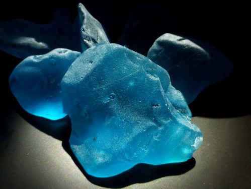 I then tried photographing blue sea glass. In the text there are many references to that color. There is even a blue glass in the essay but it is a drinking glass and has nothing to do with the sea. So, no.