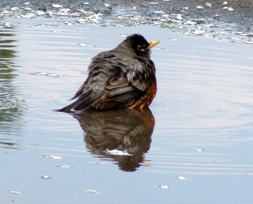 Less rain falling here. The sun is starting to part the clouds. Still a little under the weather. But overall … things are looking up, especially when I see baby birds taking baths in a roadside puddle and chance upon beautiful music like the following. Enjoy. 😉