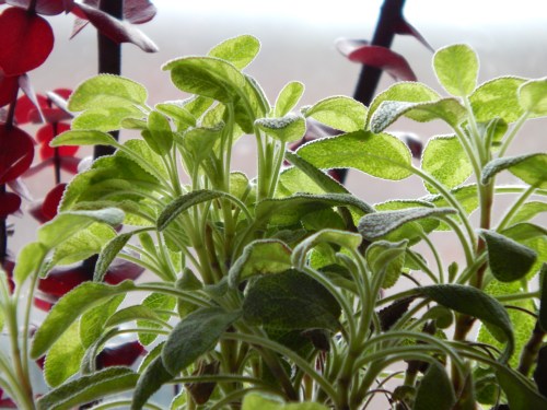 Truth be told, there are other herbs in the room, on the same little table, buckets of basil, rosemary stalks and more. But my favorite sight in the morning light, this autumn so far anyway, remains the sage …