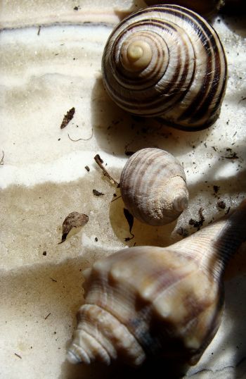 … and three shells collected I can’t remember where, but now sitting in the hallway amidst all sorts of plants.