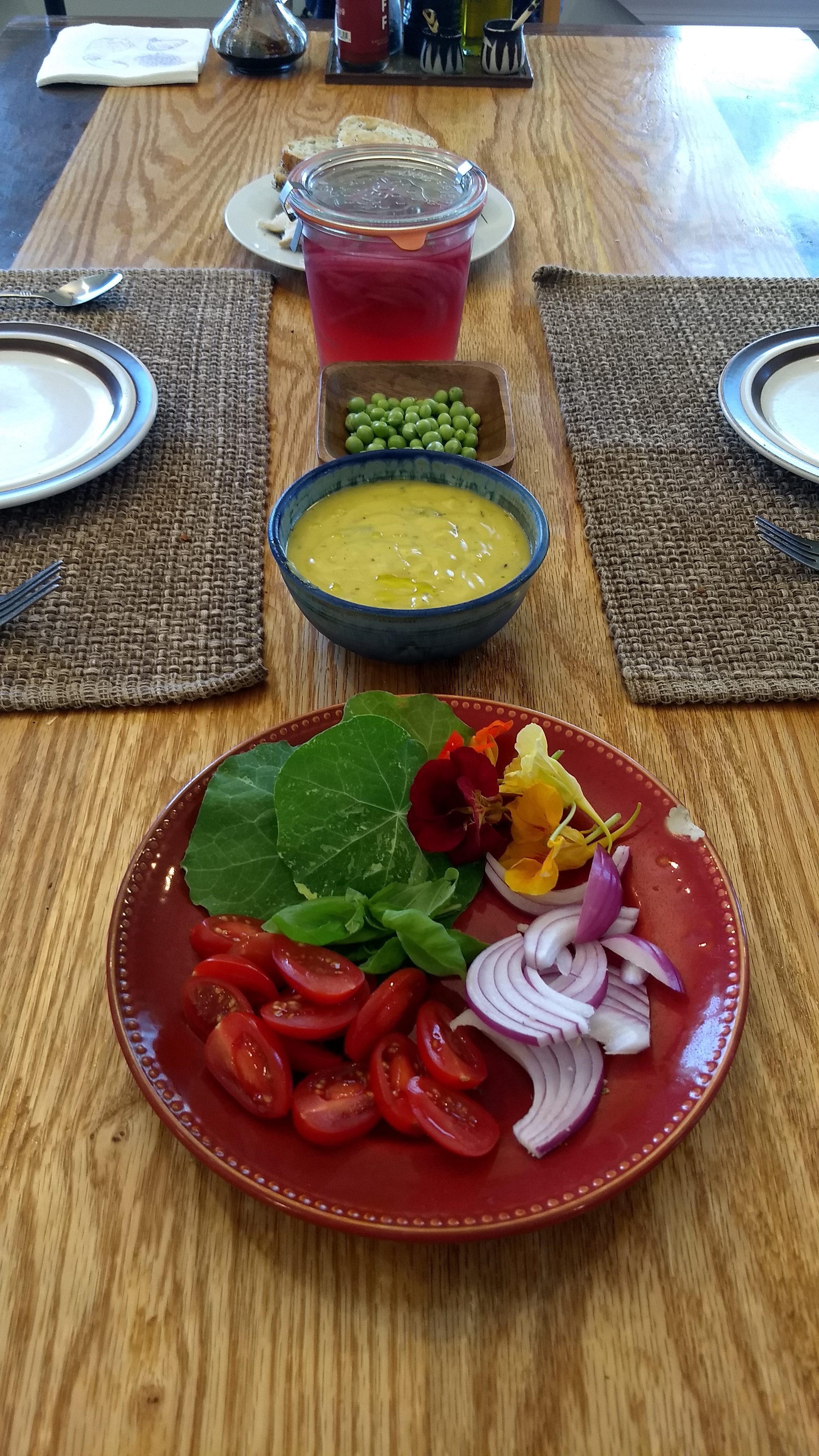 An impromptu lunch with items from the fridge, from the garden and homemade on the spot (Steve’s seasoned mayo). Feel very grateful to have access to such goodies.