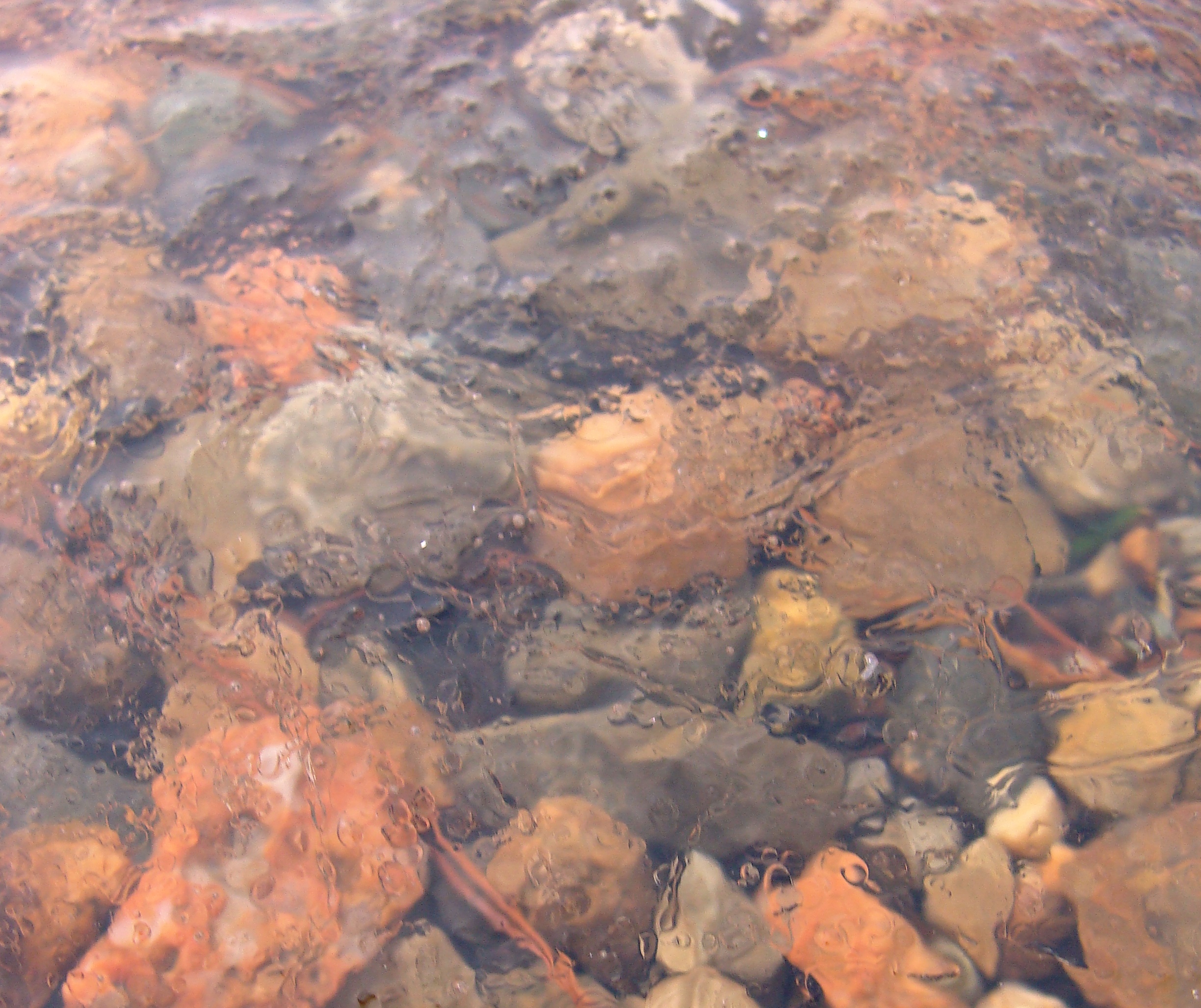 As we rested with feet in the pond, Steve kept trying to identify the fish swimming in the shallows so that we could return with the proper lures. We had not come prepared to fish, only to scout a new possible location. I snapped a few fishy photos for him but then I got distracted by sunlight on water and other creatures by the shore.