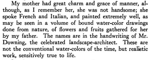 I chanced upon his memoir, Day Before Yesterday: Reminiscences of a Varied Life, published posthumously in 1920. It opens, “I was born on the 15th of April, 1836, at Danskammer on the Hudson, near Newburgh.” In it he writes with great affection for his family and especially his mother. He describes her southern roots, how she would sometimes leave New York to winter in Charleston, South Carolina, and how she nurtured his interest in painting before her death in 1853.
