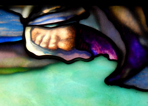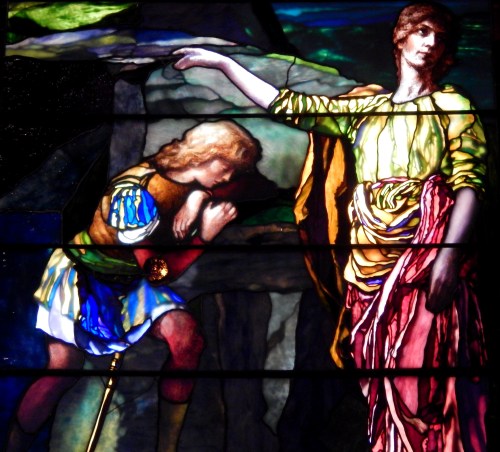 Recently I learned of an image in stained glass also appearing in thread, both based on a design by Burne-Jones. I couldn’t help but do a bit of digging and learned this: the stained glass window, David’s Charge to Solomon, was first commissioned in memory of George Minot Dexter (1802-1872) by his son Frederic Dexter. It is located at Trinity Church in the City of Boston. I’ve had the great pleasure of photographing details over the years.