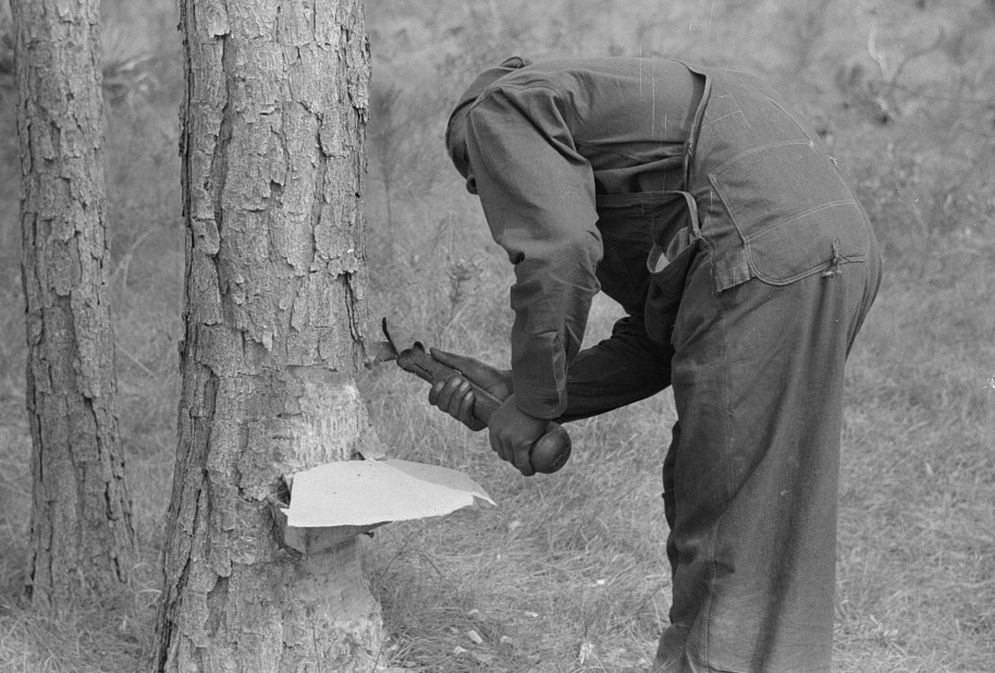 Turns out, since before the Revolutionary War, southern Blacks were essential to the production of naval stores. The nature of the work meant they lived in the pine woods. There they formed a unique culture. The first Black workers were mostly enslaved, often hired out by their owners. Even after the Civil War, these workers, now technically free, continued to apply their skills in the turpentine orchards, traveling from pine woods to pine woods across state lines.