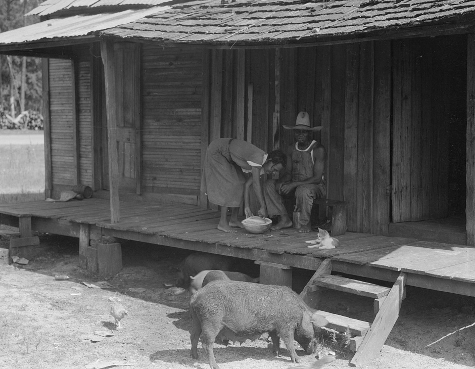 Lange, Dorothea, photographer. Turpentine worker’s family near Cordele, Alabama. Father’s wages one dollar a day. This is the standard of living the turpentine trees support. United States Alabama Cordele, 1936. July. Photograph. https://www.loc.gov/item/2017763012/.